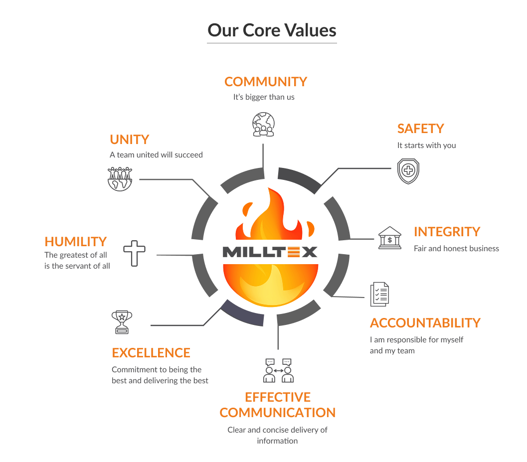 Milltex’s Core Values serve as a framework within which we serve our clients, our community, and our families.